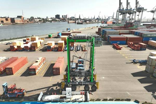 The new hydrogen-driven straddle carrier is currently being tested at Hamburger Hafen und Logistik AG’s (HHLA) hydrogen test field in Hamburg, and initial test results show the same high performance as hybrid versions.